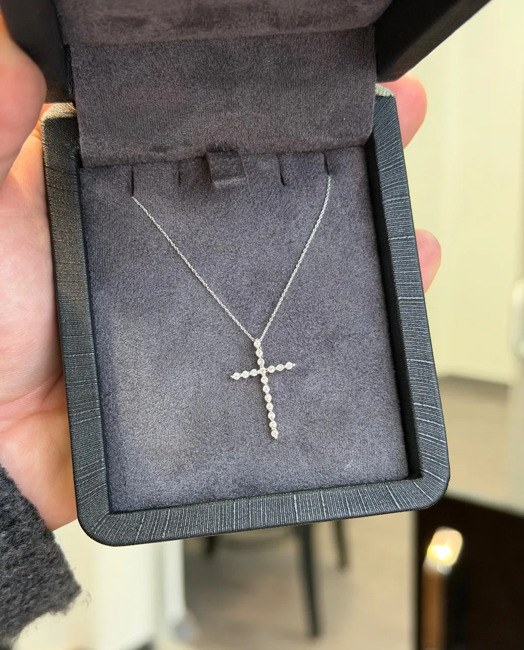 Colierul din aur cu cruce și diamante poate fi interpretat ca un simbol al credinței și al valorilor creștine, precum și al dragostei și devotamentului față de acestea. De asemenea, poate fi interpretat și ca un simbol al frumuseții și valorii vieții, care trebuie apreciate și prețuite la justa sa valoare.